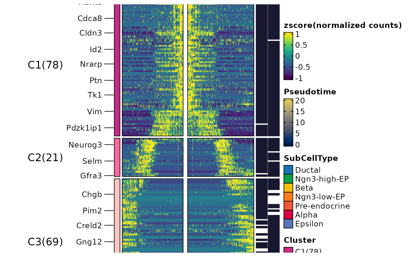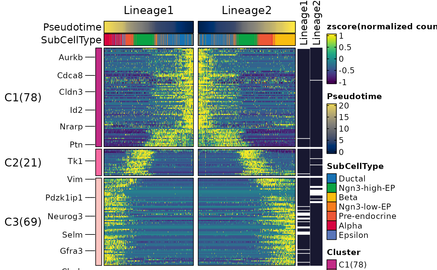 #> ℹ [2026-03-20 09:30:24] [1] 168 features from Lineage1,Lineage2 passed the threshold (exp_ncells>[1] 20 & r.sq>[1] 0.2 & dev.expl>[1] 0.2 & padjust<[1] 0.05):